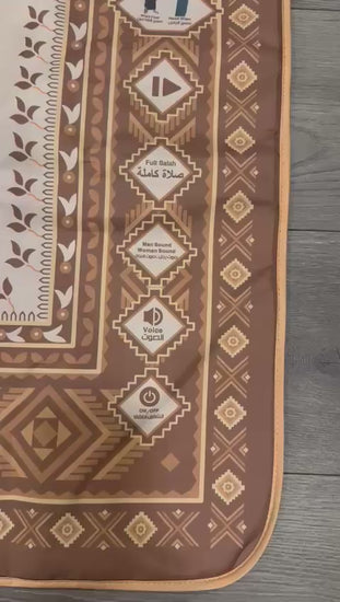 Elegant Islamic patterns and calming tones create a peaceful prayer environment that encourages concentration and reverence.