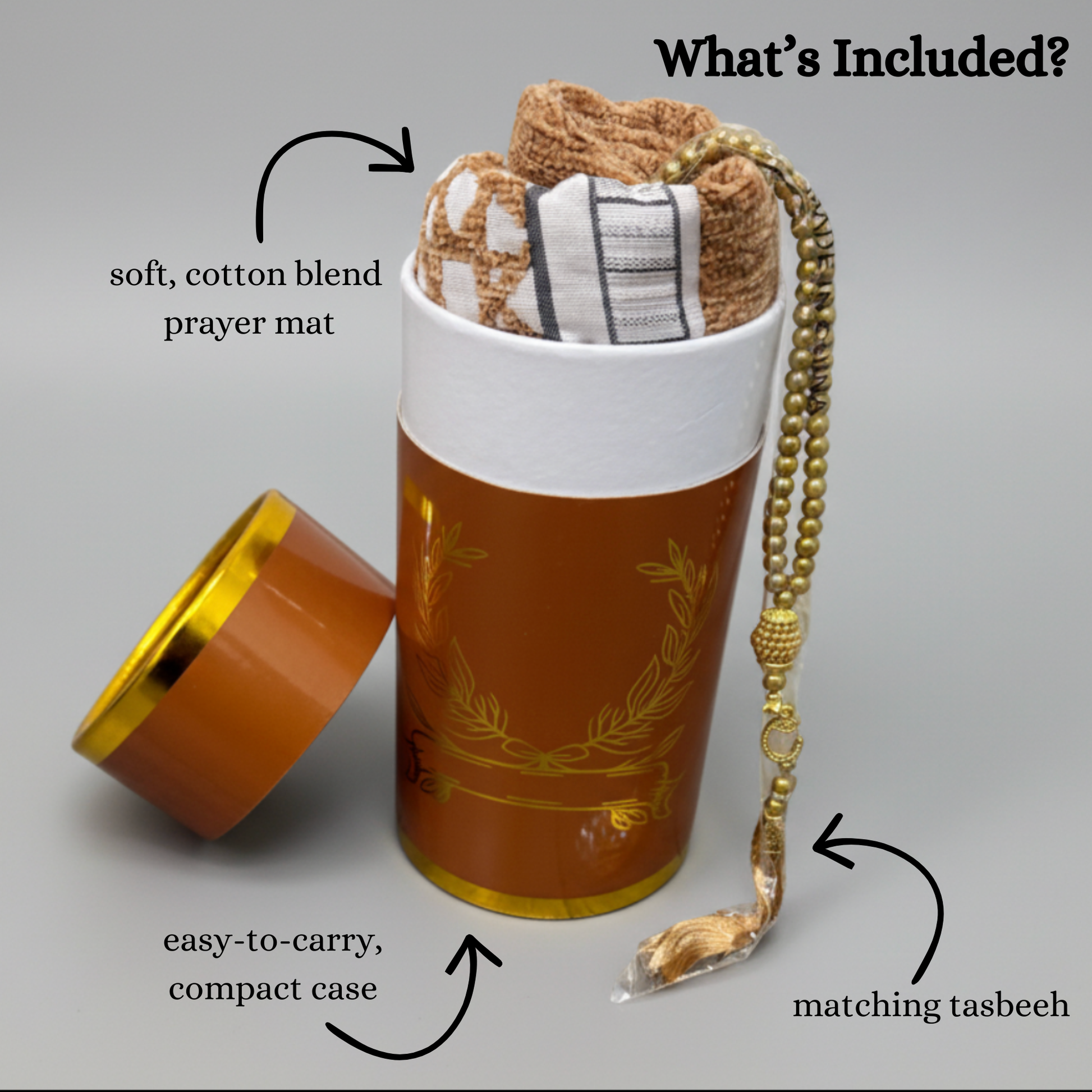 Ideal for daily prayers while traveling, commuting, studying, or visiting family. This set includes a matching carrying case and prayer beads, making it a thoughtful gift and an easy companion for consistent worship anywhere.